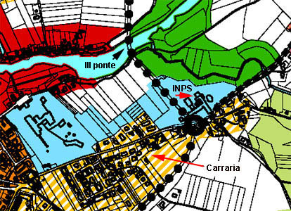 Nel piano regolatore questa zona è progettata-descritta in due modi diversi a seconda che si prenda in esame la tavola della zonizzazione o il piano struttura. Dobbiamo brevemente sottolineare che il piano struttura è uno strumento previsto dalla normativa vigente che incide significativamente sulla pianificazione introducendo una discreta flessibilità. Nei vecchi piani regolatori era possibile introdurre delle modifiche nel piano con lo strumento delle varianti. L'approvazione di una variante richiedeva però una serie di passaggi amministrativi piuttosto complessi con l'analisi delle osservazioni dei cittadini e il recepimento delle osservazioni vincolanti della Regione. Il piano struttura è redatto in modo da introdurre elementi di flessibilità che complessivamente, rispetto alla globalità del piano, possono arrivare al 10%; è così possibile agire attraverso lo strumento della variante senza bisogno di tutti quei passaggi che sono stati ad esempio necessari per l'approvazione delle 32 varianti al vecchio piano regolatore di Cividale.