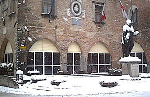 - orrore/errore temporaneo che il patrimonio storico e artistico in Italia non goda sempre del rispetto dei semplici cittadini e, a volte, degli amministratori della cosa pubblica è cosa risaputa. Non possiamo che essere"sconcertati" dall'idea di limitare, anche solo temporaneamente, con pannelli di legno, plastica e alluminio lo spazio dietro gli archi del palazzo comunale solo per aumentare lo spazio a disposizion di un noto caffè cittadino.