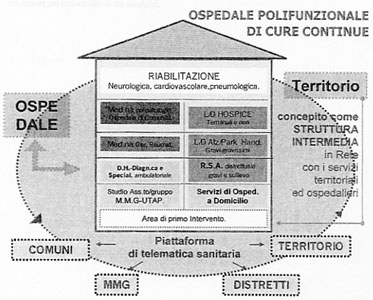 "L'ospedale di Cure Continue" può essere il luogo in cui sia possibile garantire l'insieme dei servizi e delle prestazioni che un Ospedale garantisce per gli eventi acuti, in cui la maggior parte delle professionalità e delle discipline utili ci siano sempre, magari anche con un buon grado di competenza specifica ed esperienza acquisita.